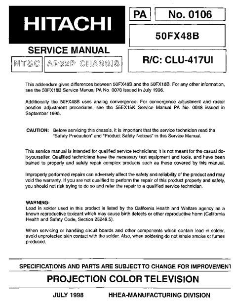 Currently you are looking for an Hitachi 50fx48b Projection Color Tv Repair Manual example of which we provide here within some form of document formats many of these as PDF, Doc, Energy Point, and in addition images of which will make it easier for you to create an Hitachi 50fx48b Projection Color Tv Repair Manual yourself. For a more clear look, you can open several examples below. All the good examples about Hitachi 50fx48b Projection Color Tv Repair Manual with this web site, we get from several sources so you could create a better record of your own.If the search you obtain here does not match what you are seeking for, please utilize the lookup feature that we have provided here. You are free to download anything at all that we provide in this article, it will not cost you typically the slightest.